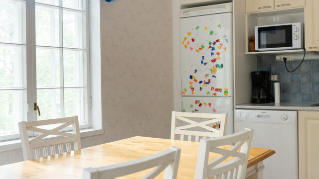 Ruiskukassa on yhteinen keittiö, kylpyhuone ja wc.